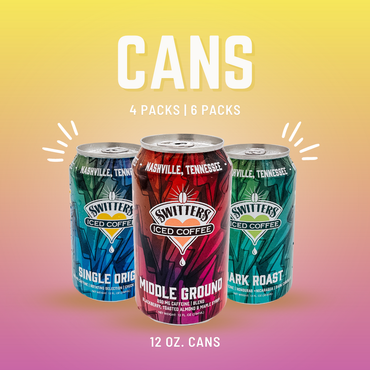 Say hello to our ready-to-drink 12oz cans, the epitome of small-batch, specialty coffee bliss! Bursting with flavor and ready to dazzle, each can is like a mini treasure of coffee goodness. One can, two ways to enjoy! Enjoy the freedom and versatility to choose between shaking things up, literally, for a nitro infusion for those moments when you're feeling fancy, delivering a smooth-as-silk texture that'll make your taste buds do a happy dance. OR, Crack open a can and dive into the pure delight of our classic iced coffee, perfect for those laid-back, chill vibes. Boasting a caffeine kick of 250mg per can, these babies are your go-to sidekick for powering through those busy days or spontaneous adventures. So, whether you're brunching with friends or conquering the daily grind, Switters has got your back with our pour-over quality brews in a can!